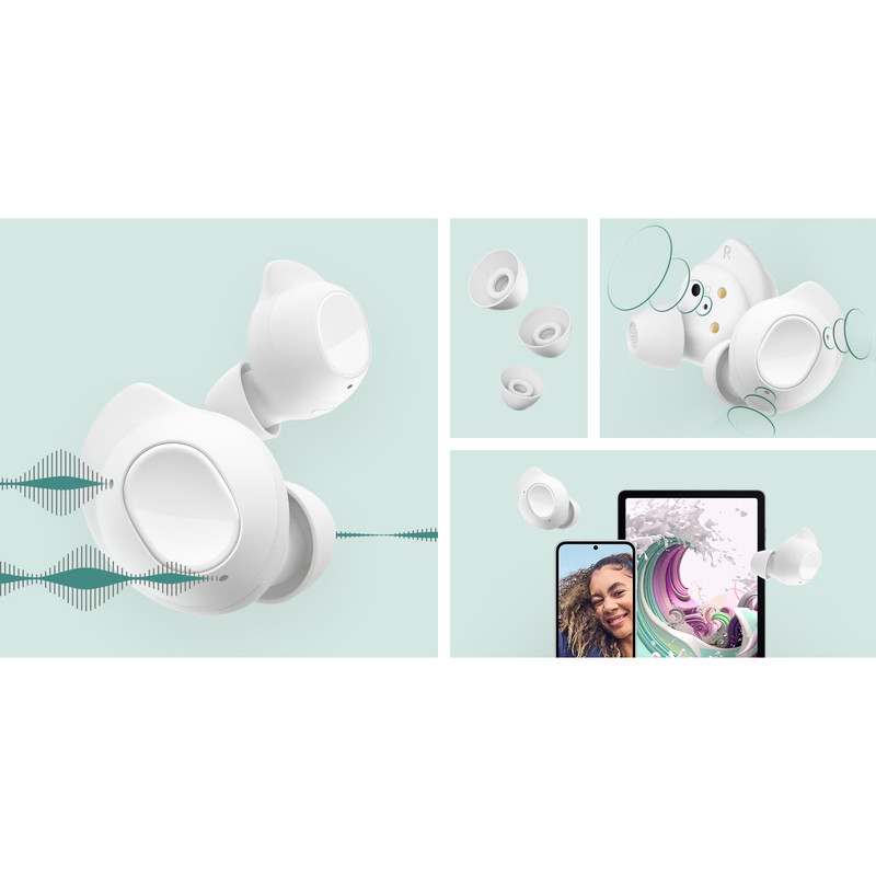 هدفون بلوتوثی سامسونگ مدل Galaxy Buds FE عضوی دیگر از خانواده در حال گسترش فن ادیشن کرهایها است که با شکستن قوانین محصولات میانرده، آمده است تا خودی در بازار جهانی نشان دهد. این هدفون در بخش طراحی گوشیها دستخوش تغییرات بزرگی شده است تا حس خوب تغییرات را به رخ همردهها بکشد. طراحی بالدار هدفونها، هدف بزرگی را دنبال میکند. سامسونگ با این طراحی جدید سعی دارد تا پایداری هدفون و حس امنیت بیشتری به کاربر بدهد. این طراحی نه تنها ثبات هدفون در گوش را تضمین میکند بلکه در زمان ضربهزدن و لمس برای اجرای فرامین مختلف، شاهد جابهجایی هدفونها در گوش نیستیم. همچنین بخش لمس هدفونها نسبت به دیگر بادزهای سامسونگ تا حدودی صافتر است تا از بازخوردهای ناخواسته و لمسهای اشتباه جلوگیری شود. با اینکه سامسونگ تلاش کرده تا قیمت Galaxy Buds FE را پایین نگه دارد اما صدای خروجی همچنان قدرتمند، واضح با بیس عمیق است. اما نباید فراموش کرد که این فن ادیشن جدید کرهایها به حذفنویز فعال یا ANC مجهز است. قابلیتی که بیش از 98 درصد از نویز محیط اطراف را مسدود میکند. هرچند یک حالت معکوس هم وجود دارد. با حضور میکروفونها بیرونی، صدای محیط با افزایش حجم در گوش شما پخش میشود که این قابلیت تنها در مدلهای رده بالای سامسونگ قابل استفاده بود. سامسونگ این مدل را با طول عمر 30 ساعت با شارژ بادزها و کیس شارژ تبلیغ کرده است اما خود بادزها تا 3.5 ساعت در مکالمه، تا 6 ساعت با ANC فعال و 9 ساعت بدون ANC موسیقی را پخش میکنند.